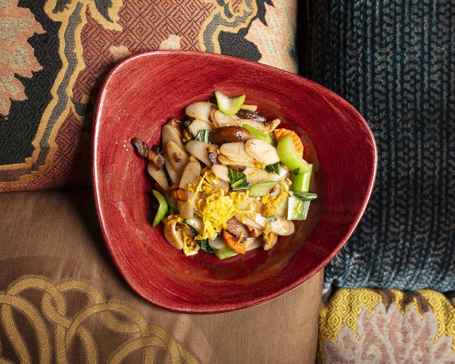 L’omaggio alla Festa di Metà Autunno proseguirà in tavola con i Nian Gao, gnocchi di riso saltati con carote, funghi e maiale marinato con soia, e con gli Spaghetti di Xiamen con funghi cinesi, carote, verza e piselli dolci, che portano a Roma i profumi di Xiamen, città situata nella provincia del Fujian, una regione costiera della Cina. Il delicato sapore del mare esploderà invece con gli Xian Dan Huang Xia, i gamberi croccanti saltati con tuorlo marinato.