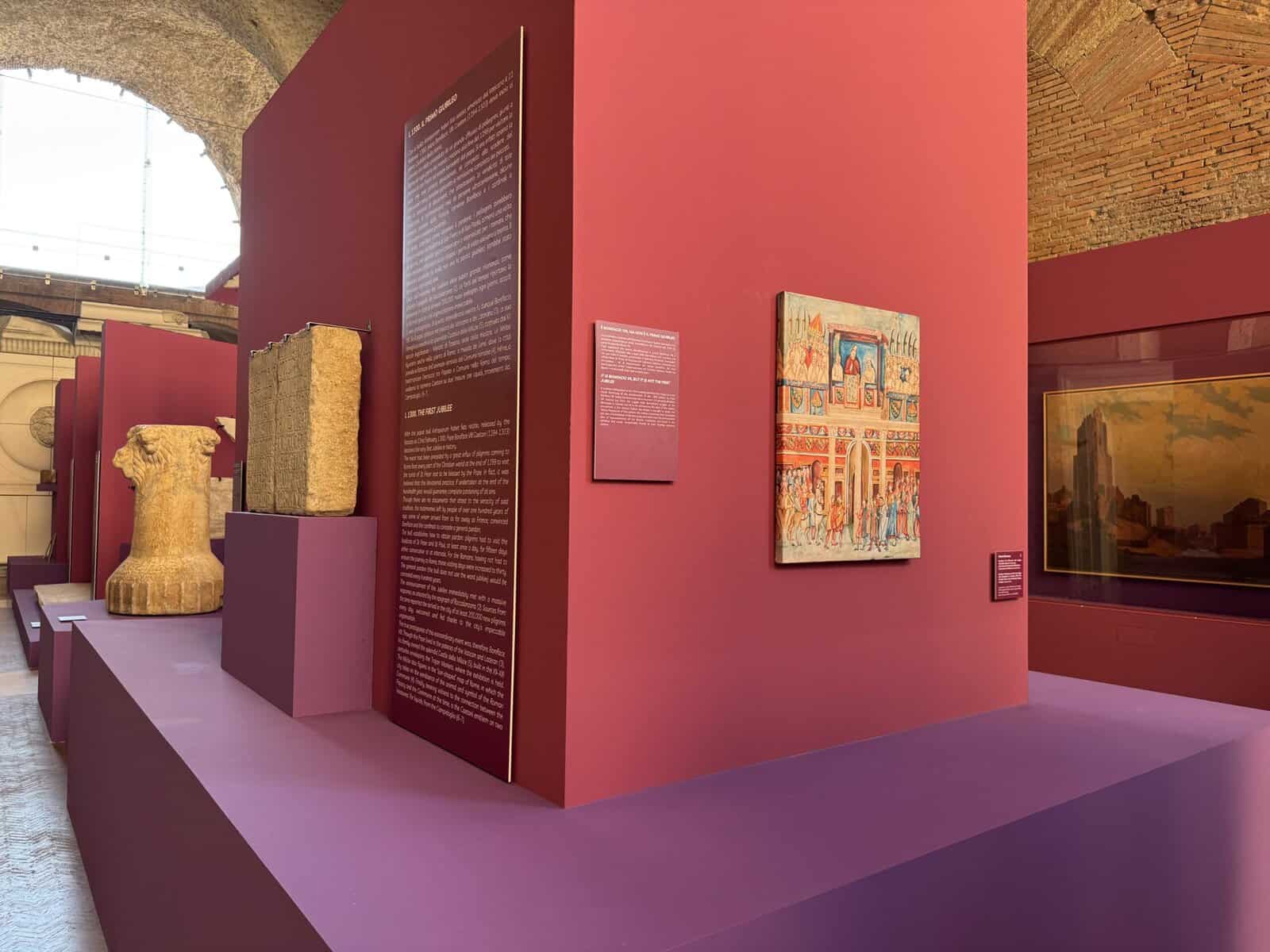 Allestito negli ambienti della Grande Aula al piano terra, il percorso si articola in otto sezioni tematiche che offrono uno sguardo a tutto campo sulla storia del Giubileo del 1350: dal primo Anno Santo del 1300 al ritorno del papa nell’Urbe nel 1377, passando per la Peste Nera e il terremoto del 1349, con un focus su Cola di Rienzo e Francesco Petrarca, appassionati cultori dell’antica magnificenza di Roma e sostenitori del ritorno del papa in città. La mostra racconta uno spaccato di Roma nel Trecento, intrecciando storia, arte, politica e fede.