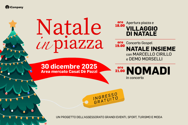 Si terrà martedì 30 dicembre 2025 l’evento “Natale in piazza“, una grande manifestazione a ingresso gratuito che trasformerà l’area del Mercato Rionale di Casal de’ Pazzi (tra Viale Locke e Via Augusto Comte, Municipio IV) in un luogo di incontro, festa e comunità.